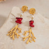 Inspired by marine elegance, these earrings bring nature’s artistry into your jewelry box. The red coral chips create a bold splash of color while the gold coral motif adds a refined, textured finish. A chic piece for holidays, special dinners, or as a symbolic oceanic gift.