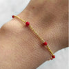 Light and refined, this delicate red coral bracelet adds a charming touch of color to your everyday look. Featuring small natural red coral beads spaced evenly along a fine gold-plated chain, it's the perfect minimalist piece for women who appreciate understated elegance.