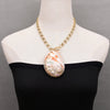 Make a statement that shimmers with every move with this large abalone shell necklace. Featuring a stunning natural abalone pendant with swirls of iridescent pink, orange, and green, it's set on a bold gold-tone loop chain for a look that’s both elegant and earthy. Each shell is one-of-a-kind, showcasing nature’s artistry in every curve and color shift. This piece is perfect for dressing up resort wear or adding a coastal edge to your city look.