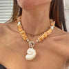 Command attention with this showstopping puka shell necklace, designed to capture the spirit of tropical shores. The chunky natural shells are carefully stacked to form a sculptural choker, crowned with a luminous spiral shell pendant and organic baroque pearl accents. Whether you're barefoot on the beach or layering up for summer in the city, this piece instantly evokes sun, salt, and freedom.