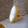 Discover the perfect blend of sophistication and natural beauty with our exquisite Mother of Pearl Gold Ring. This stunning piece of jewelry is more than just an accessory; it's a statement of refinement and grace.