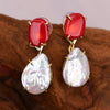 Let your ears sparkle with these stunning stud earrings featuring a vibrant red coral top and an organic baroque pearl drop. The striking color contrast adds a sophisticated touch, while the gold prong settings enhance their luxurious allure. Perfect for women who love unique, nature-inspired jewelry with a refined flair.