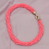 This pink coral bead necklace is the epitome of delicate beauty. Handcrafted from natural pink coral beads, it features a multi-strand twisted design that exudes timeless femininity and grace. Its elegant 18K gold-plated clasp, paved with sparkling CZ stones, adds just the right amount of glam to make it a standout piece for both day and night.