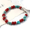 This stunning red coral and turquoise bracelet captures the perfect balance between bold and earthy tones. Crafted with rich red coral beads and natural turquoise stones, it adds a colorful and meaningful touch to your jewelry collection.