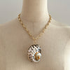 Embrace bold seaside flair with this stunning shell conch pendant necklace. The large natural shell makes a statement, while the elegant gold-toned chain adds a refined touch. Whether you're styling a boho beach look or an elevated evening outfit, this piece brings the ocean's charm straight to your neckline.