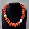 Stand out with this remarkable necklace crafted from stacked red sponge coral slices, a brushed gold-plated bead, and a luminous white baroque pearl. This bold, earthy piece celebrates raw beauty and artisanal charm, perfect for fashion-forward women who love natural textures and unique silhouettes.