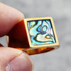 Crafted from high-quality 316L stainless steel, this ring combines durability with elegance. The centerpiece features a captivating square-cut abalone shell, showcasing vibrant hues of blue, green, and purple in natural, swirling patterns. Whether you're dressing up for a night out or want to add a unique touch to your everyday look, this ring brings modern sophistication with a touch of nature. Each piece of abalone is unique, making your ring one-of-a-kind. The natural shimmer of the shell evokes a sense of tranquility, strength, and individuality—ideal for men who want their jewelry to tell a story.