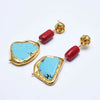 Bring a burst of ocean-inspired color to your look with these stunning turquoise coral earrings. Featuring genuine red coral and vibrant blue turquoise framed in irregular gold-plated settings, these statement earrings are perfect for adding a bold, artistic touch to your outfit. Their handcrafted charm and coastal elegance make them a standout accessory you'll reach for again and again.
