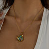 This waterproof shell necklace brings the ocean to your everyday look with a stunning abalone inlay framed by a golden scallop shell pendant. With a stainless steel base and hypoallergenic finish, this necklace is made for daily wear—rain or shine, beach or city. A beautiful combination of coastal charm and modern elegance.